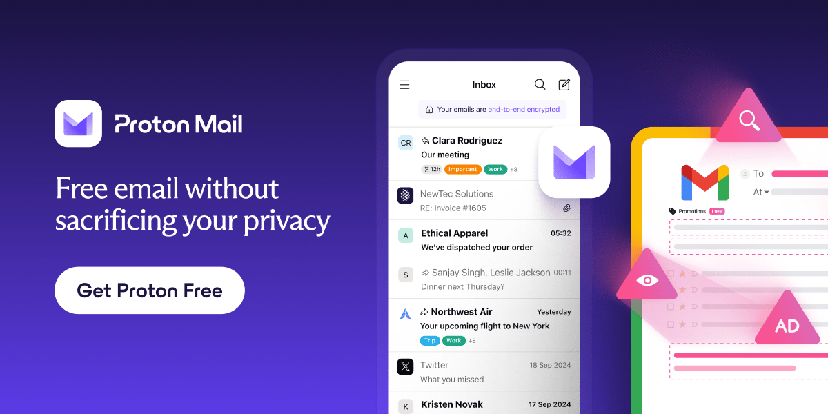 Gmail tracks you. Proton doesn’t. Get private email that puts your data — and your privacy — first.