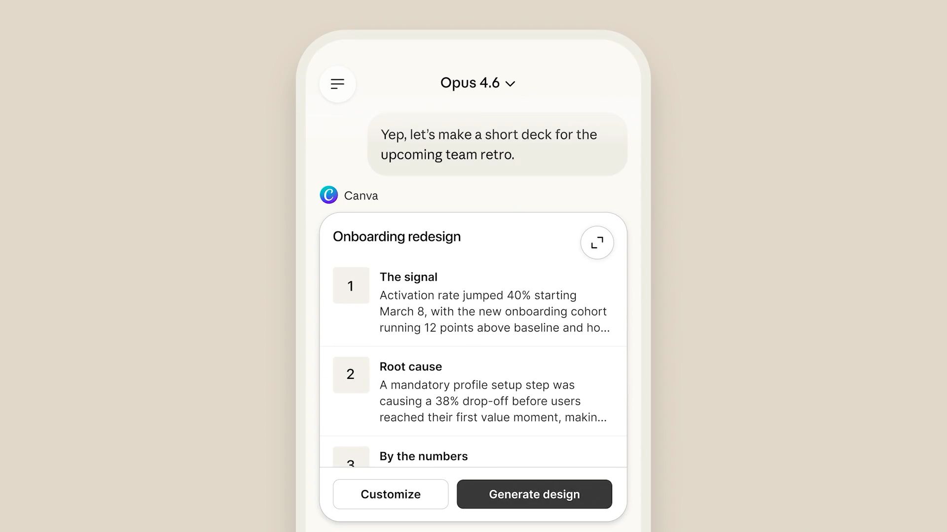 That means you can now pull up Figma designs, build Canva slides, check Amplitude dashboards, and more (all from your phone), right inside a Claude conversation.
